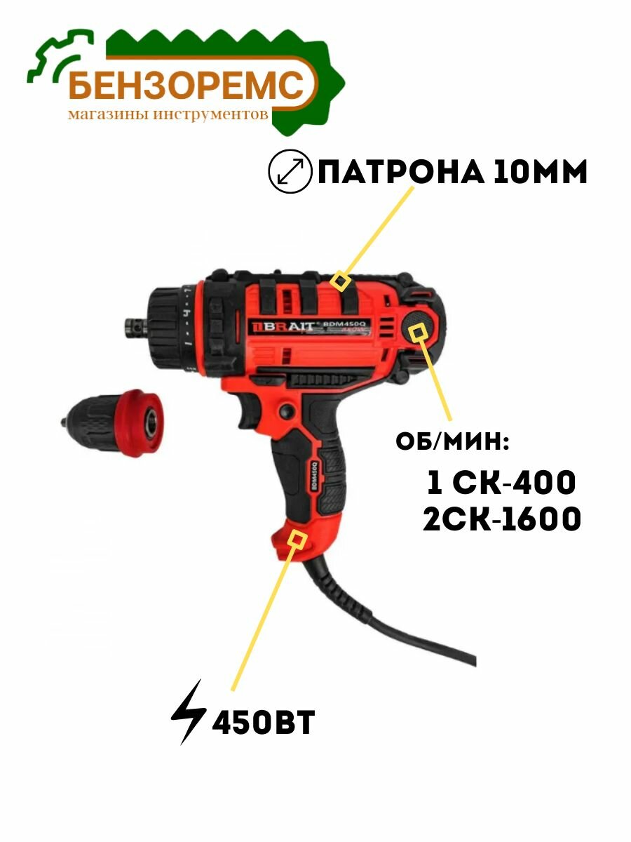 Дрель сетевая BRAIT BDМ 450Q
