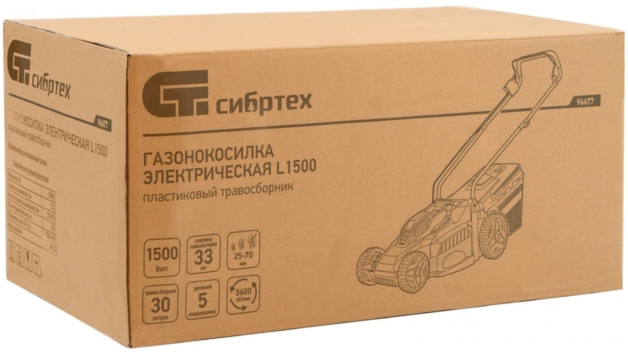 Купить Газонокосилка электрическая L1500, 1500 Вт, ширина 33 см, 5 уровней, пластиковый травосборник 35 л СИБРТЕХ 96677
