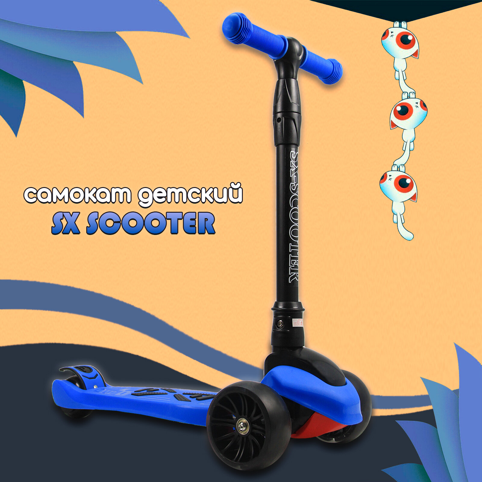Купить Самокат трехколесный синий SX Супер Макси складной, светящиеся колеса