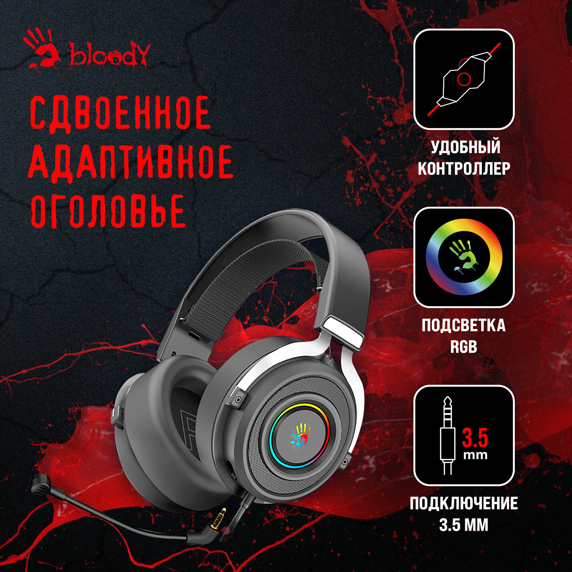 Наушники с микрофоном A4Tech Bloody G535P черный/серебристый 2м мониторные оголовье (G535P 4PIN+USB/BLACK+SILVER)