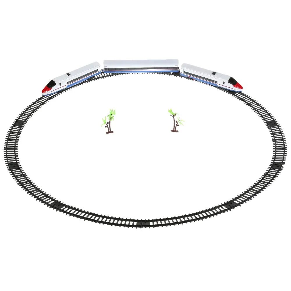| Подробная комплектация | локомотив - 2 шт., вагон - 1 шт., рельсы - 16 шт., дерево - 2 шт. |