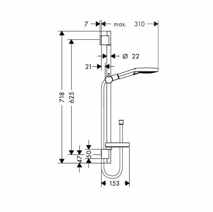 | Дополнительная информация | высота стойки для душа: 718 мм; диаметр душевой лейки: 125 мм |