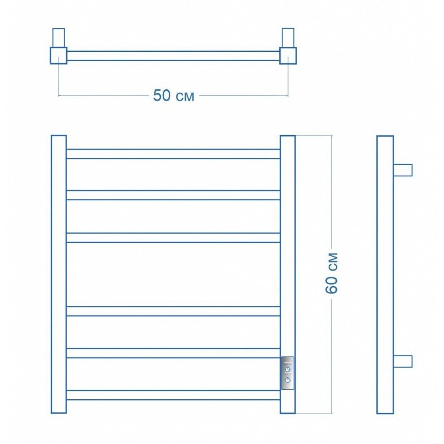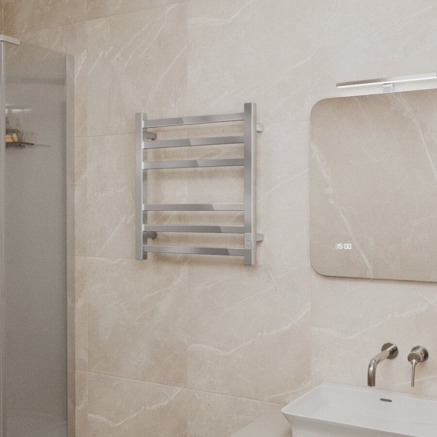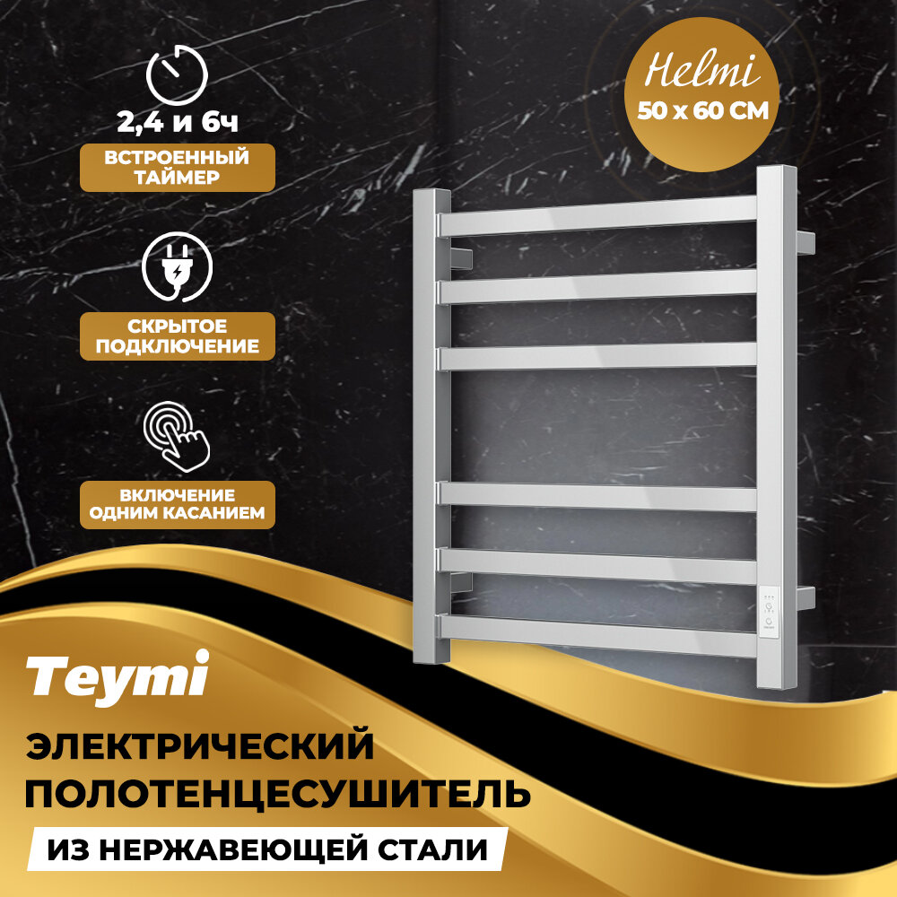 Полотенцесушитель электрический, прямоугольное сечение Teymi Helmi П6 50х60, с таймером, подключение левое/правое интересное: