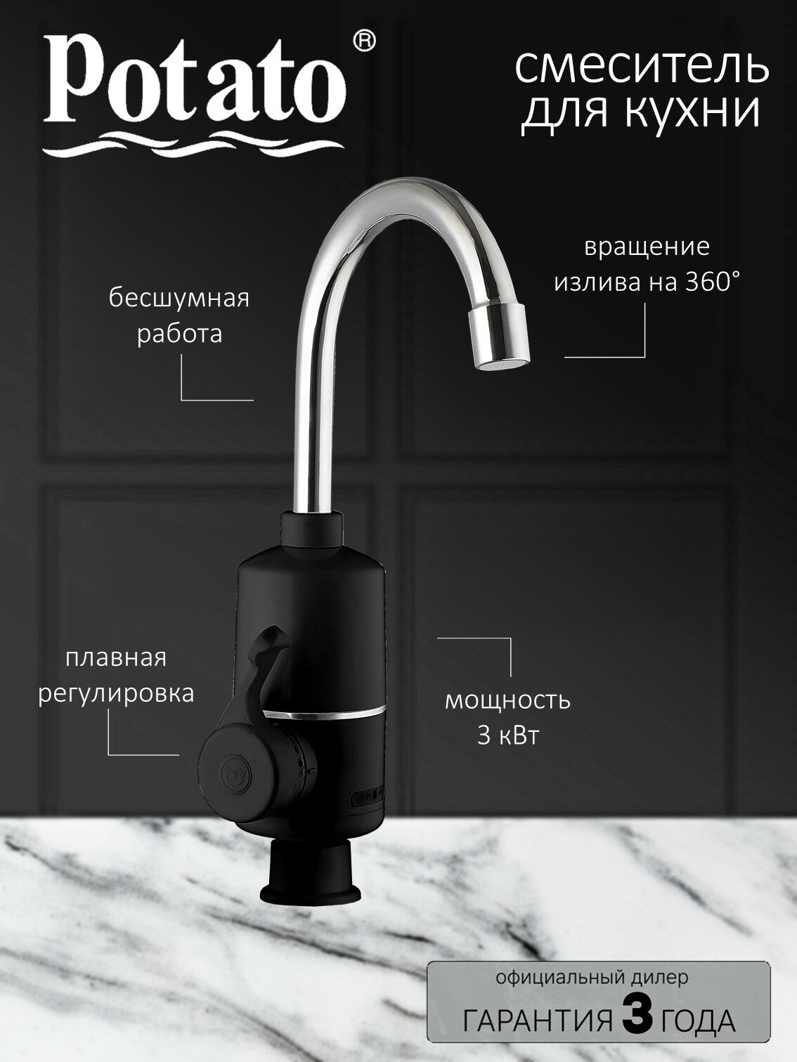 Смеситель на кухню Potato P0056-6 с нагревом воды, чёрный интересное: