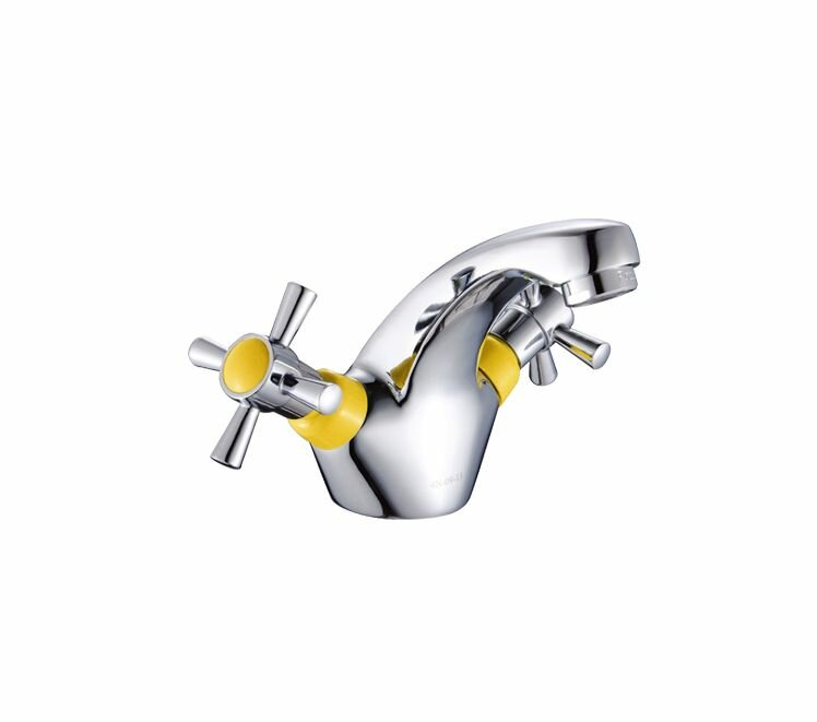 Смеситель д/умыв, 2-ручк, керам к/б, хром, желтые вставки, крепл шпилька, Potato (Китай), P1054-10 интересное: