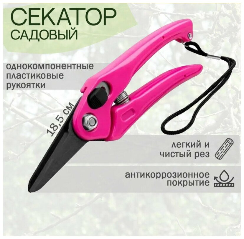 Секатор садовый Центроинструмент 1387 из стали пластиковая рукоятка розовый 185мм / сучкорез