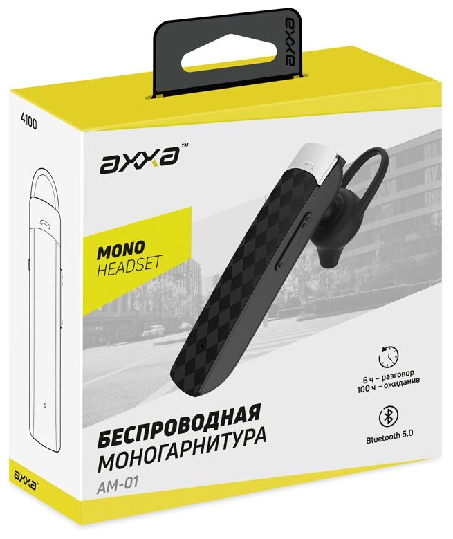 Беспроводная моногарнитура AM-01, BT 5.0, 100 мАч, чёрный, AXXA интересное: