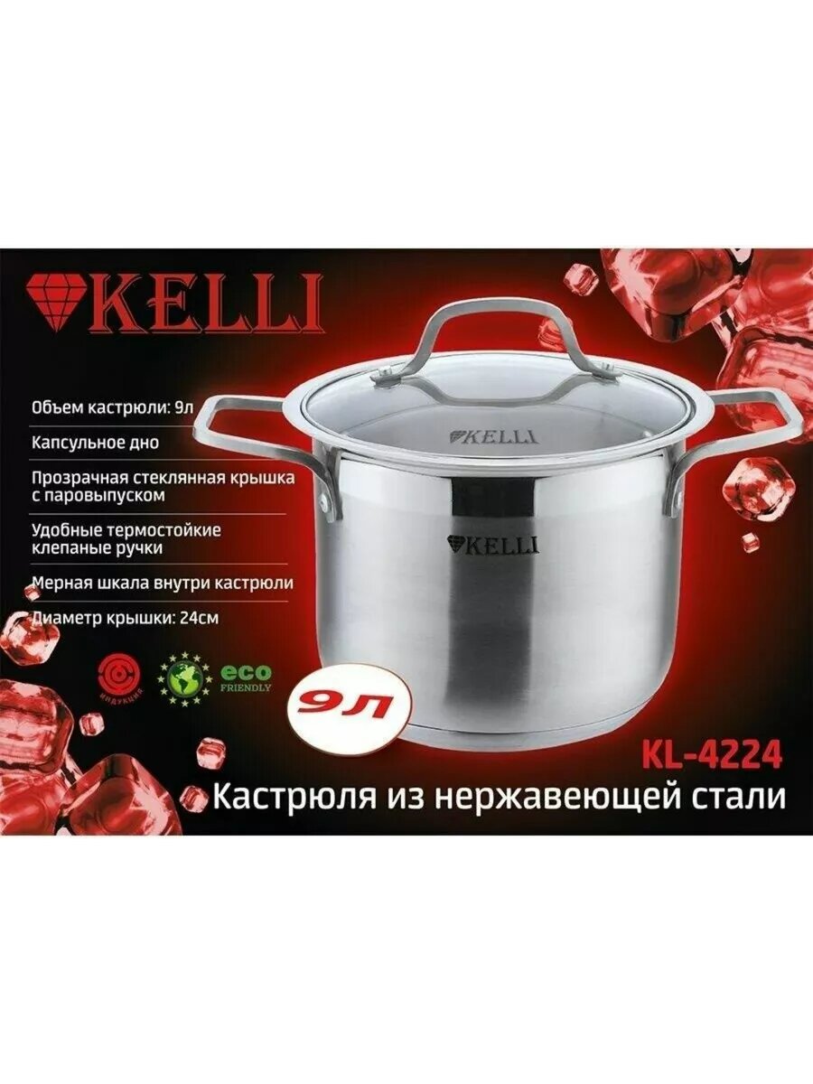 Кастрюля с крышкой Kelli KL-4224, 9л, серебристый