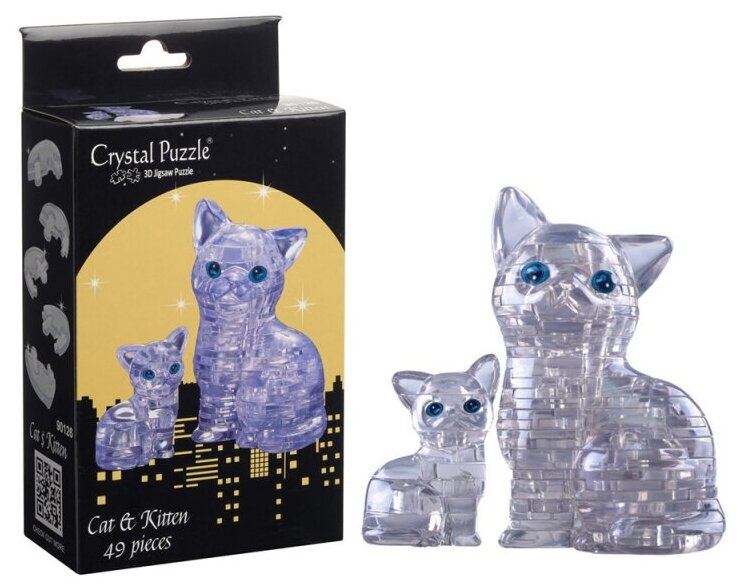 3D-пазл Crystal Puzzle IQ игра для детей кристальная серебристая Кошка с котенком 49 деталей