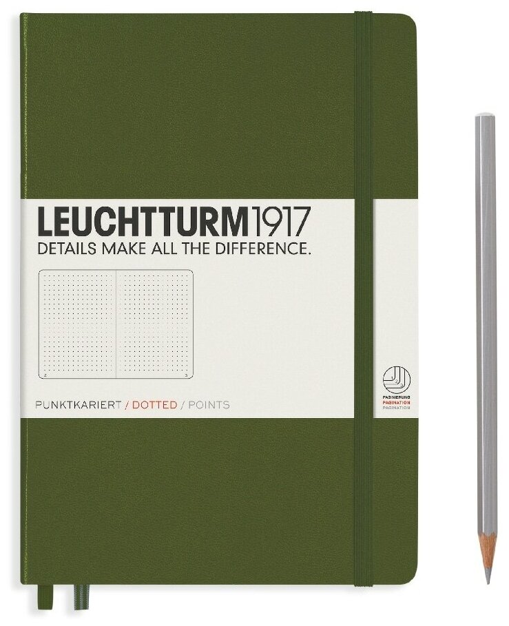 Записная книжка Leuchtturm Medium A5 Army твердая обложка 251 стр точка (348103) интересное: