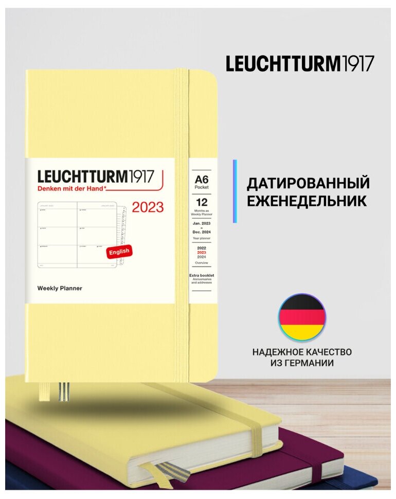 Еженедельник-планер Leuchtturm1917 Pocket A6 (9x15см.) датированный на 2023 год, 80г/м2 - 144стр., твердая обложка, цвет: ванильный интересное: