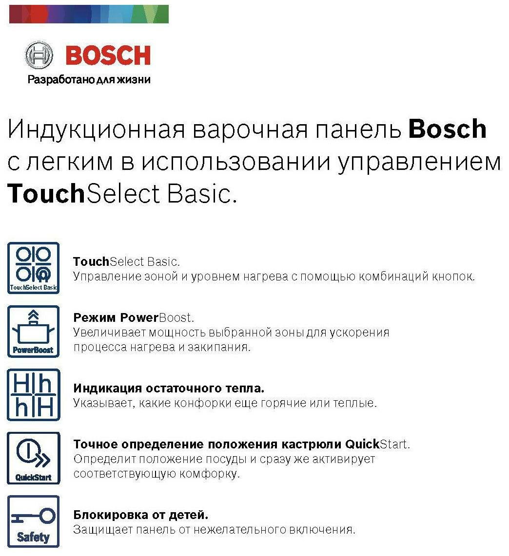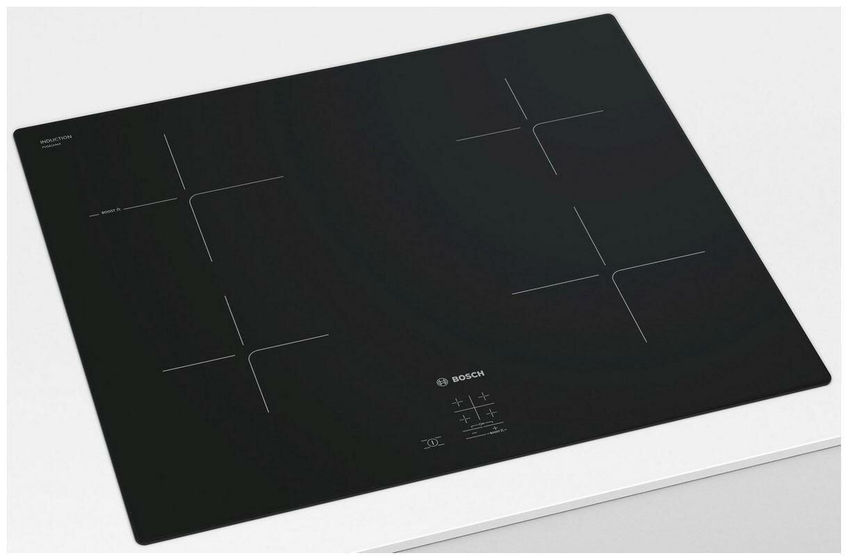Индукционная варочная поверхность Bosch Serie 2 PUG61KAA5E независимая, конфорок - 4 шт, стеклокерамика, 4600 Вт, черный