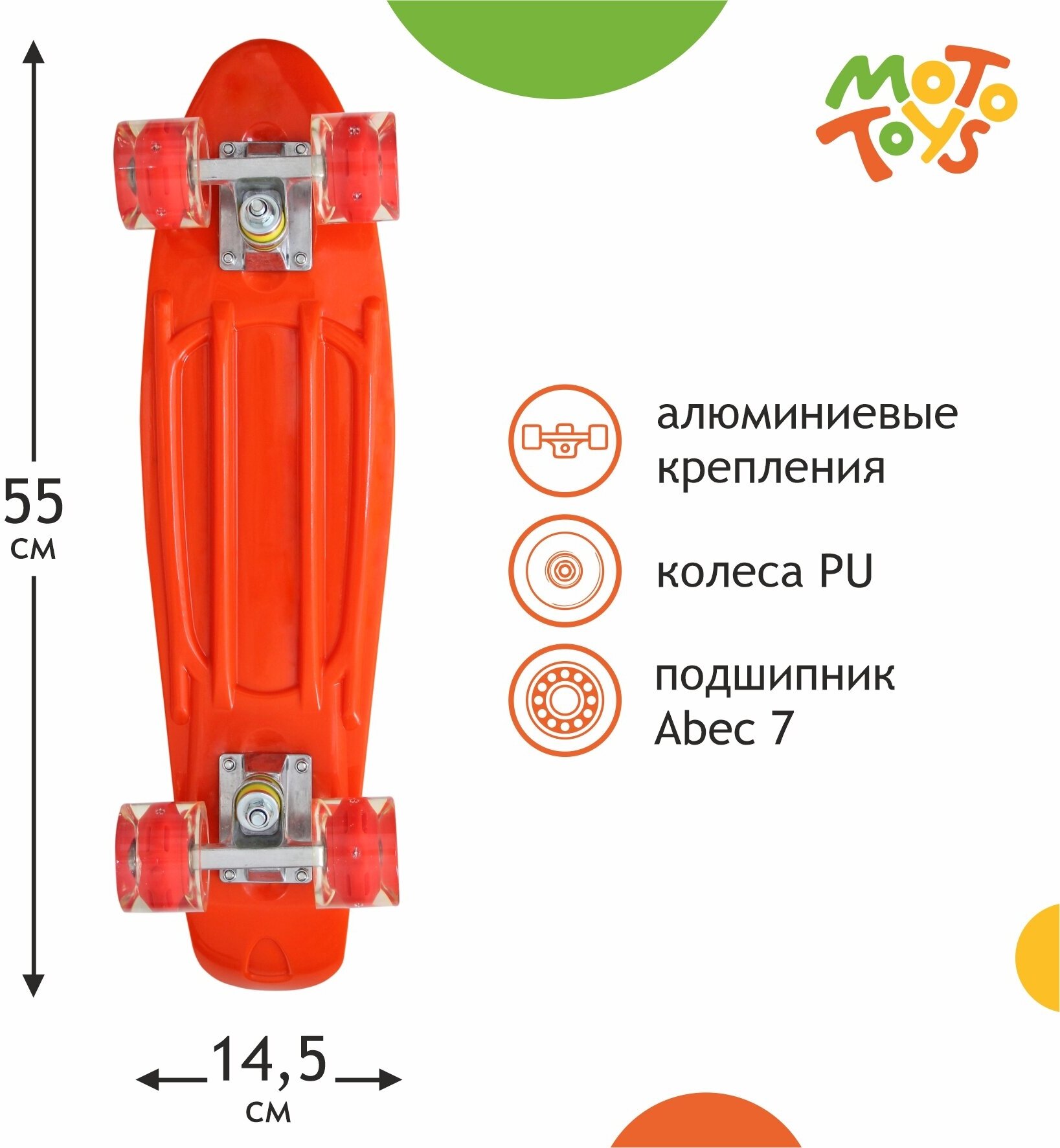 Скейтборд, колеса светятся, 55х15 см, оранжевый