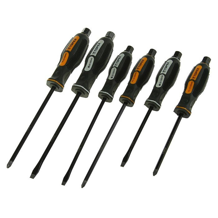 Отвёртки ударные TOPEX, CrV, 6 шт., закалённое жало, намагниченное жало, SL PH, с вешалкой интересное: