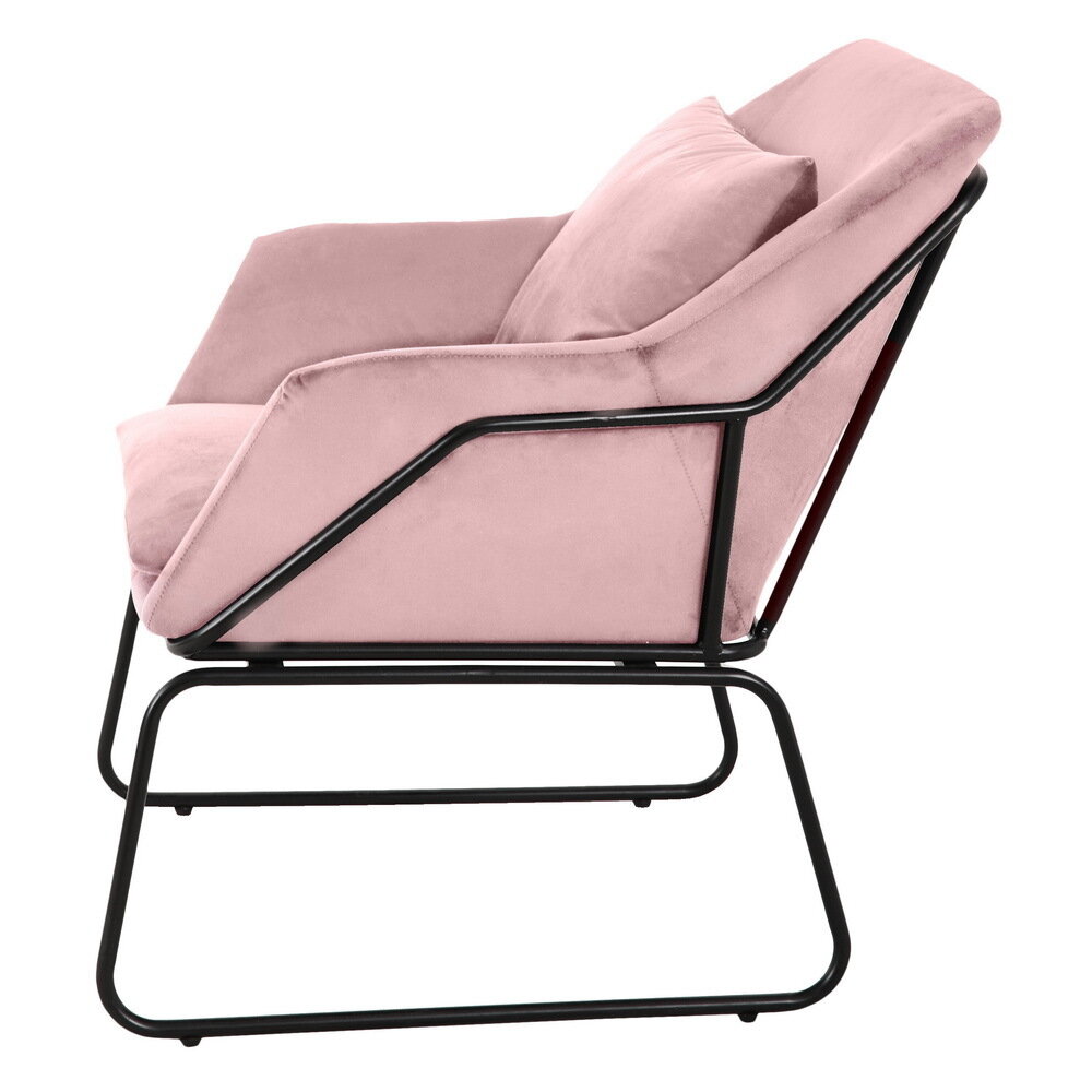 Кресло с подушкой мягкое велюр ALEX пудровый розовый, для отдыха, на черных металлических ножках, офисное, интерьерное для дома в гостиную и на кухню