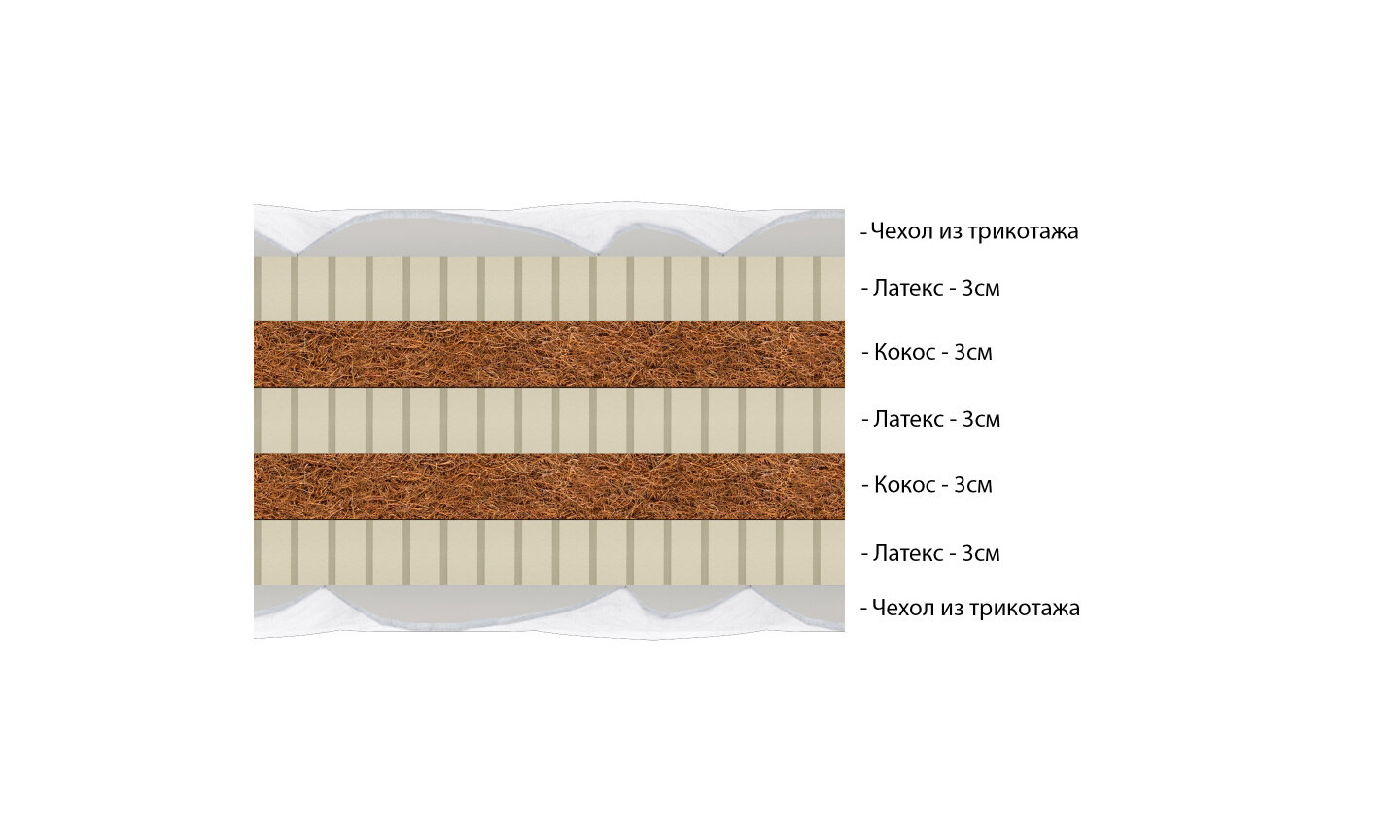 | Наполнитель | комбинированный (пенополиуретан + холкон + латексированная кокосовая койра + натуральный латекс) |