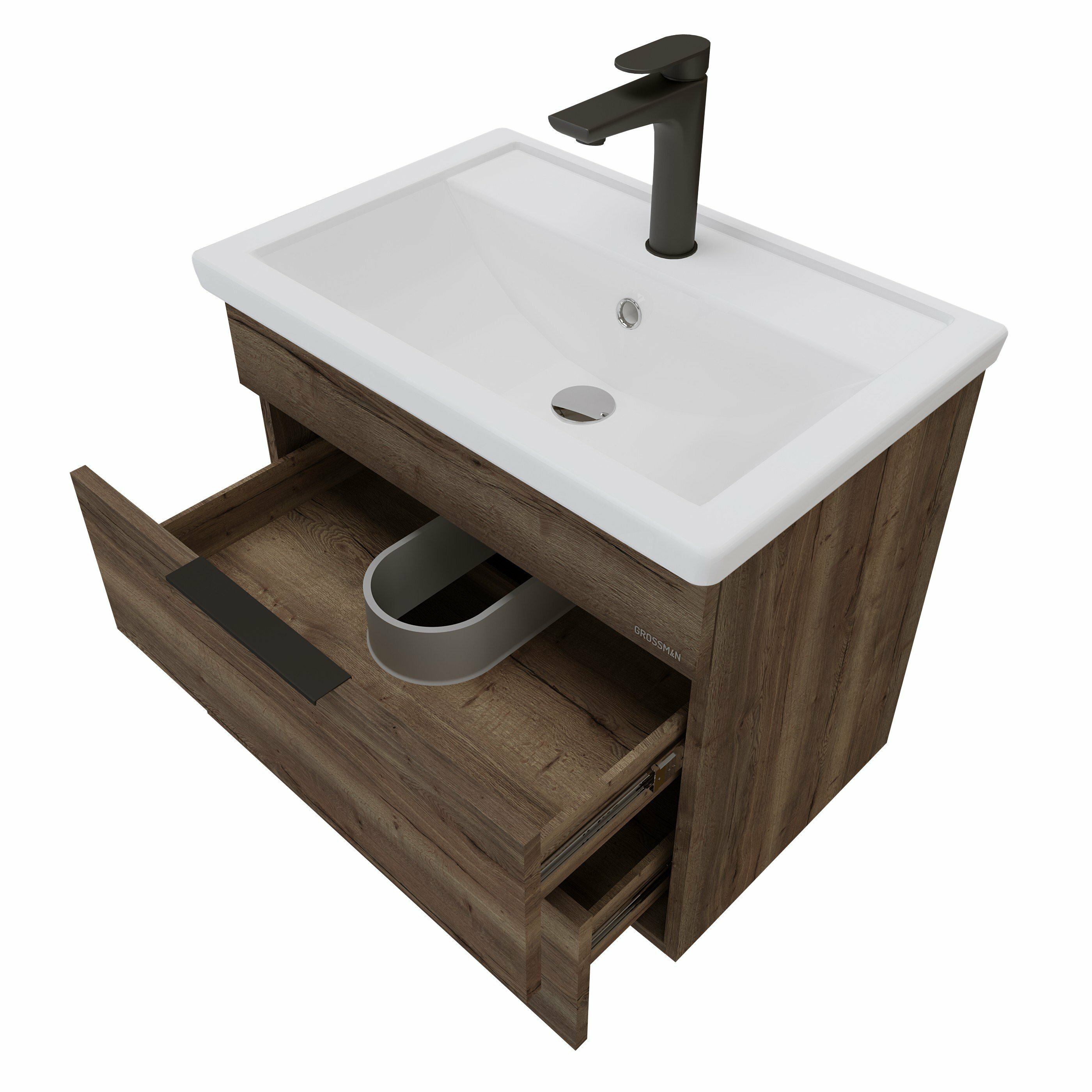 Grossman Тумба под раковину Grossman Форта 60 1060052 подвесная Темный дуб галифакс