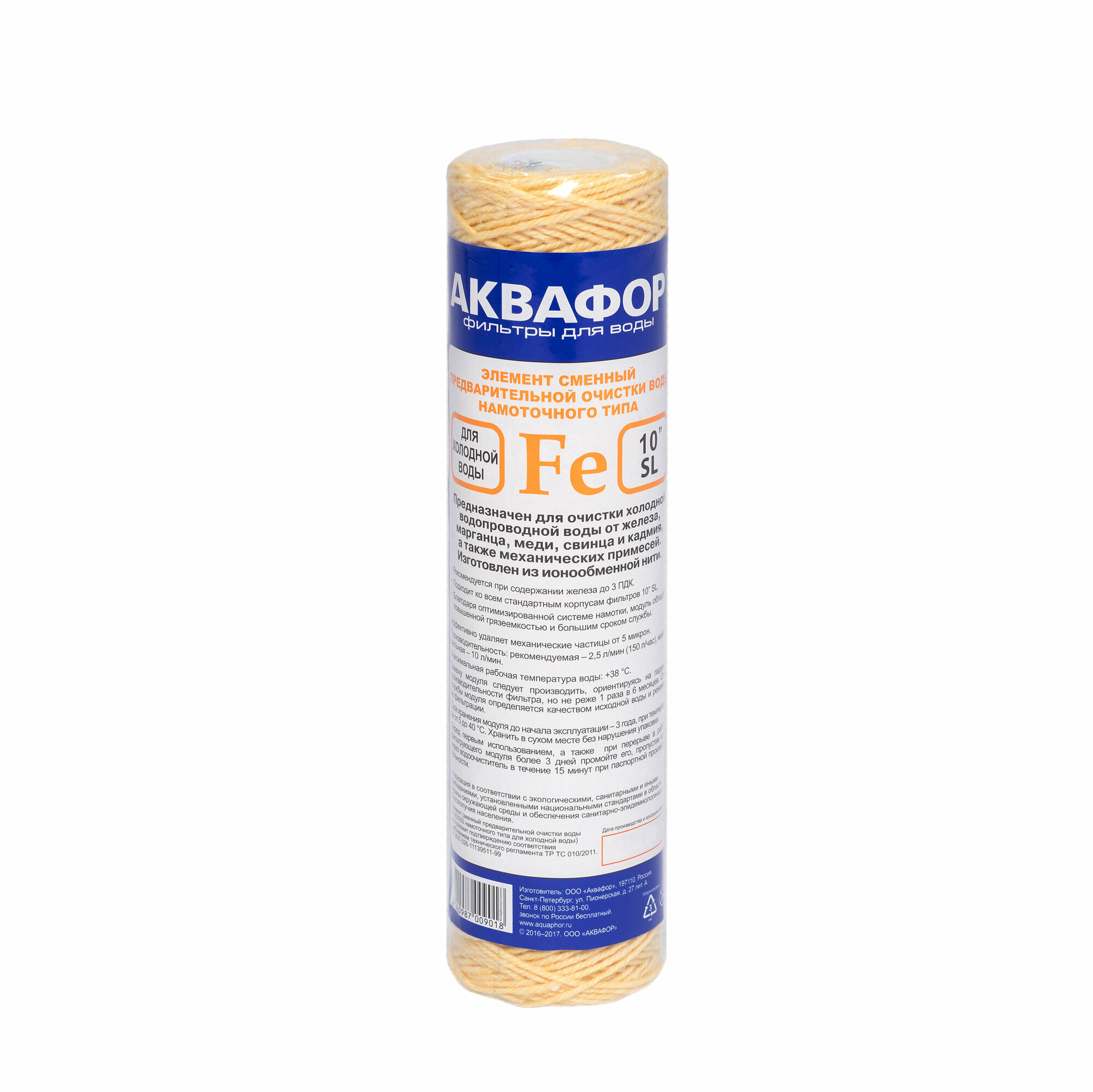 Картридж фильтра Аквафор для холодной воды Fe 63/250 намоточный от ржавчины 5 мкм 10SL | код 208824 | АКВАФОР ( 1шт. )