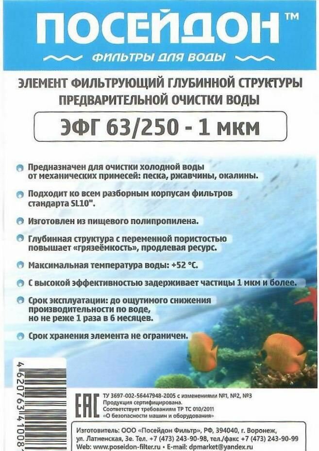 Картридж сменный Посейдон, ЭФГ, 63/250-1, 1 мкм интересное: