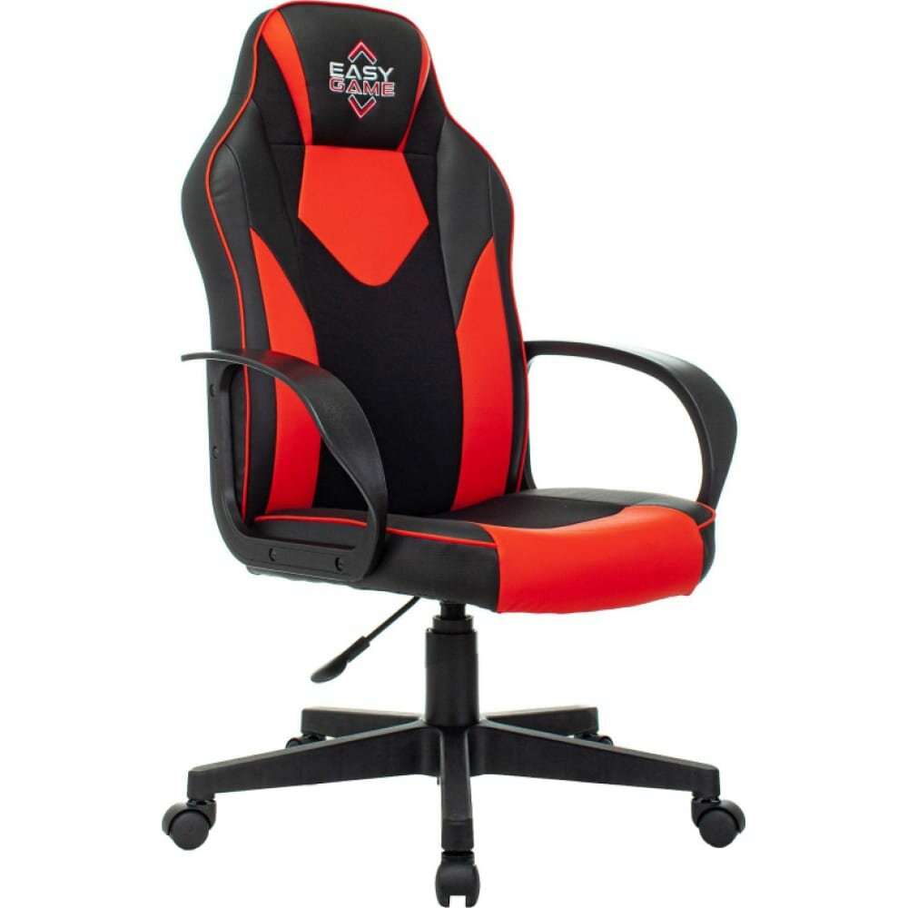 Кресло компьютерное Easy Game игровое, с подлокотниками, экокожа/ткань, крестовина из пластика, черный/красный