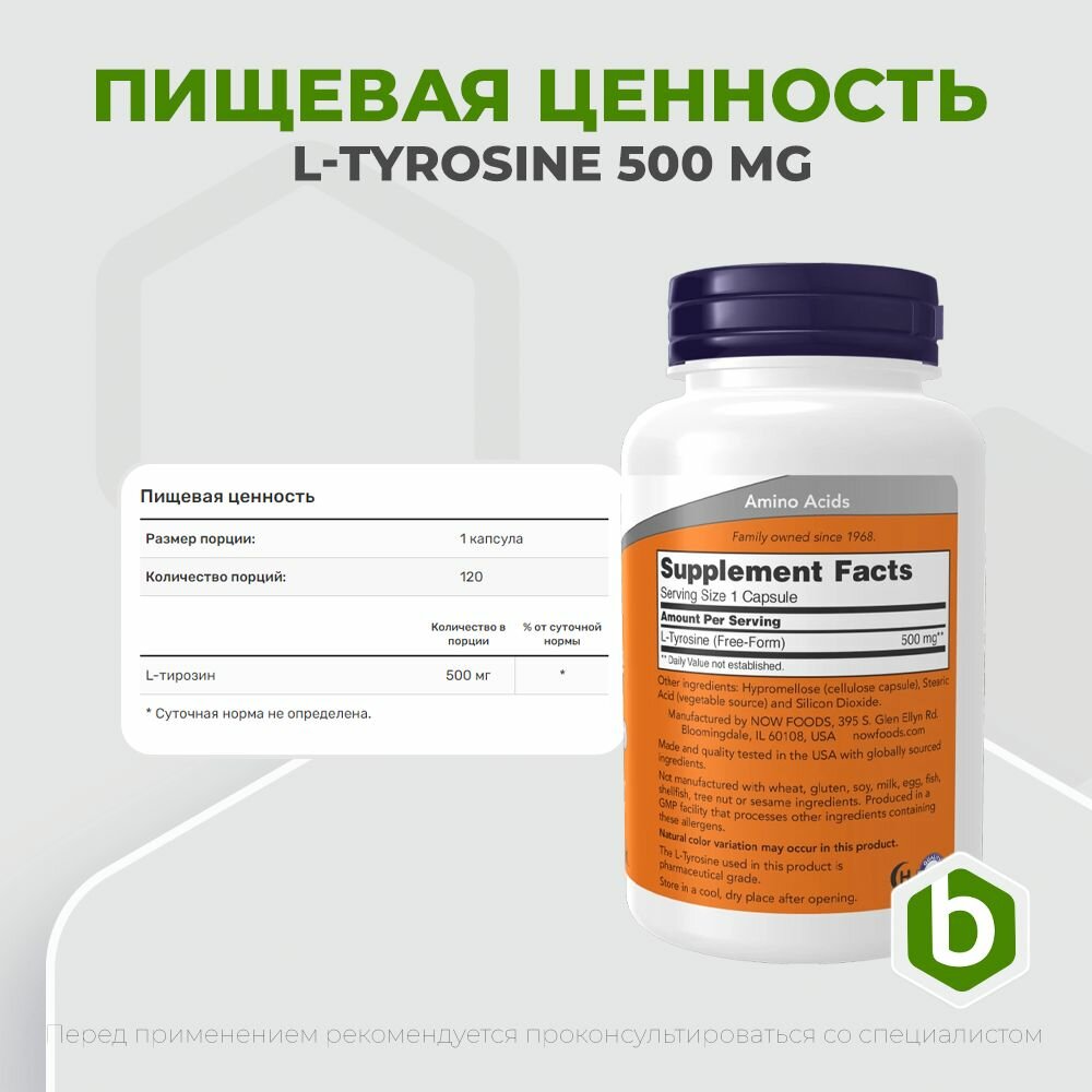 Отдельные аминокислоты NOW L-Tyrosine 500mg 120капс. интересное: