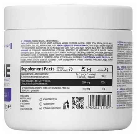 ОстроВит Цитруллин предтренировочный комплекс OstroVit Citrulline 210 г. Натур, 70 порций интересное: