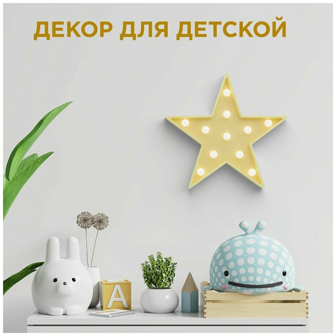 Светодиодный декоративный светильник с теплым белым цветом свечением для интерьера детской или спальни / Компактная настольная ночная лампа в виде звезды / IP20 / 3Вт / гарантия 1 год / 12-24,