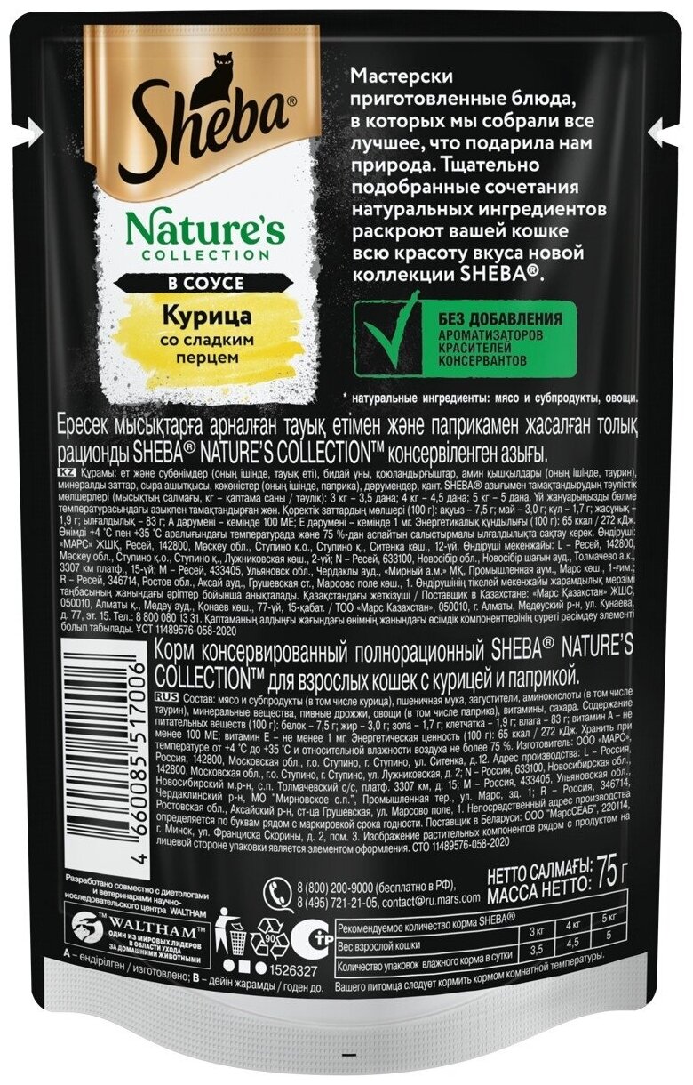 Купить SHEBA 75гр Корм для кошек Natures Курица со сладким перцем в соусе (пауч)