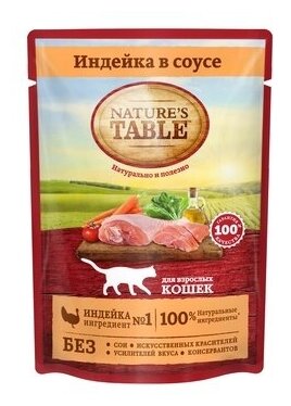 Купить Natures Table Паучи для кошек с индейкой в соусе 10174803 0,085 кг 25345 (34 шт)