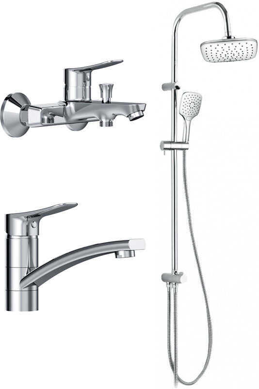 Купить Душевой комплект Damixa Смеситель Galaxy DX751000000 для ванны с душем + Душевая стойка Origin Evo 978200000 + Смеситель Galaxy DX750220000 для ракови