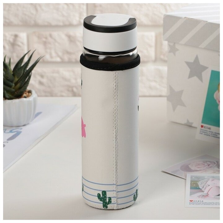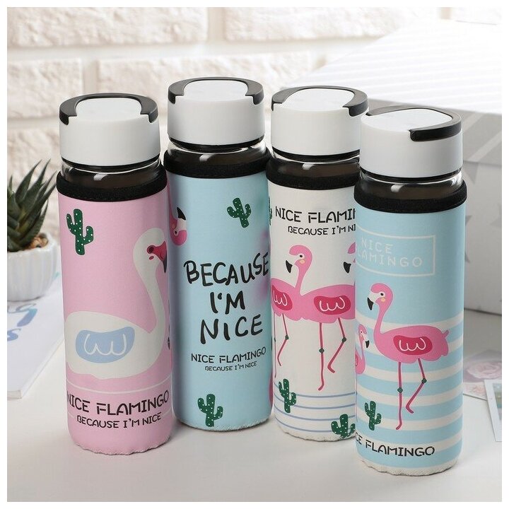 Бутылка для воды в чехле "Фламинго" 500 мл 7x23,5 см, рисунок микс 3613017