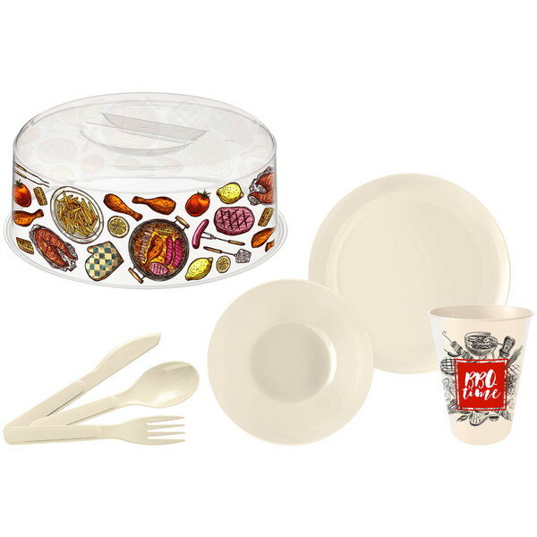 Набор для пикника с декором, 25 предметов на 4 персоны (светло-бежевый) , 1 шт. интересное: