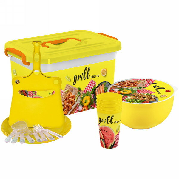 Комплект для пикника, 19 предметов на 4 персоны (Желтый)