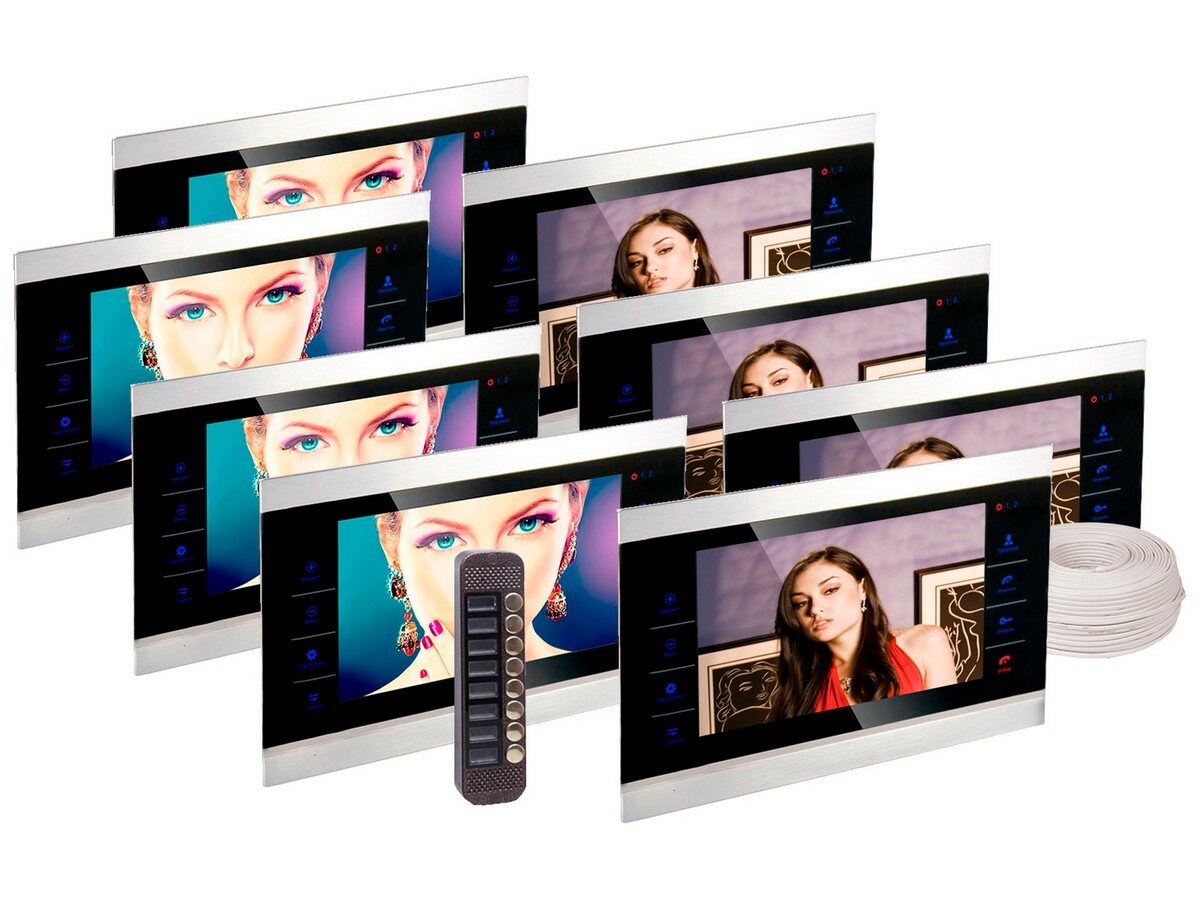 Купить Комплект: видеодомофон на 8 квартир: 8 мониторов HDcom S-104 вызывная панель JSB-V088K - запись по движению