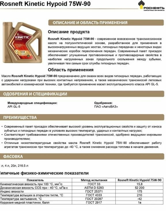 Ниже Вы можете прочитать отзывы на Масло трансмиссионное роснефть KINETIC GL-5 75W90 4л, ознакомится с подробными характеристиками, посмотреть интересные обзоры и фотографии на Масло трансмиссионное роснефть KINETIC GL-5 75W90 4л.