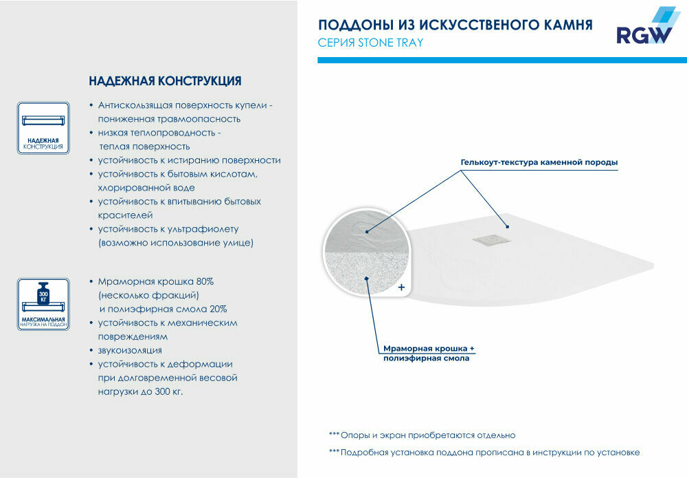 Душевой поддон RGW Stone Tray ST/R-W 900х900х25 16153099-01 интересное: