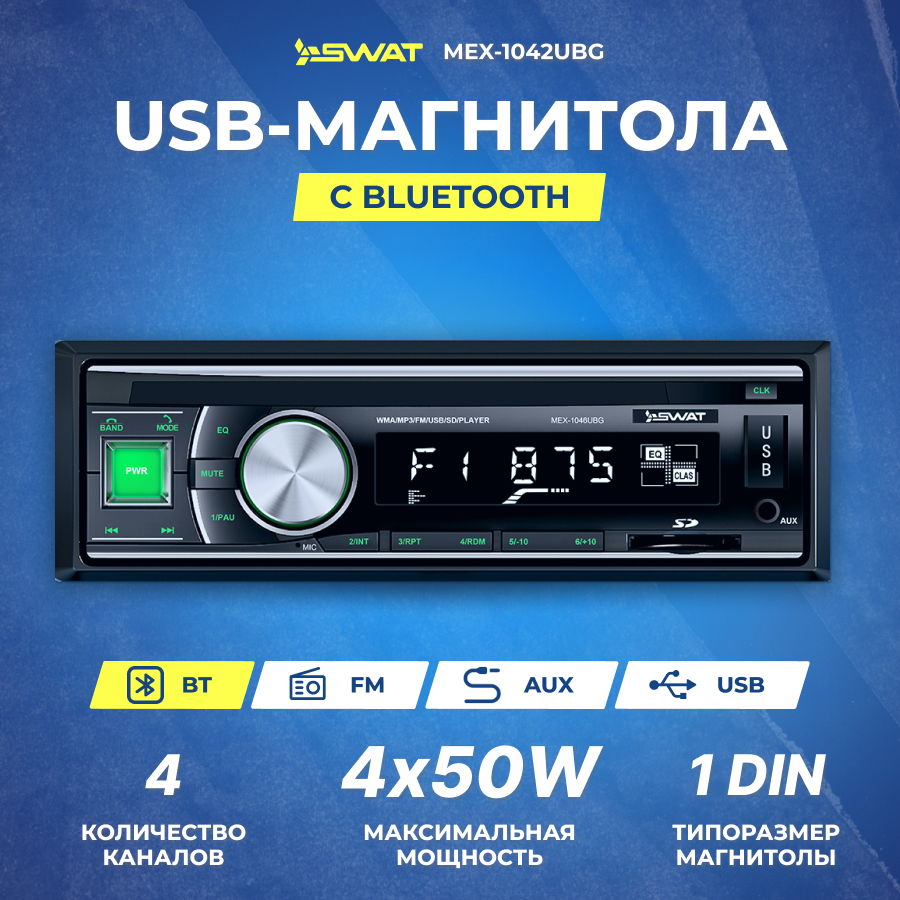 Ниже Вы можете прочитать отзывы на Ресивер-USB Swat MEX-1042UBG 4х50 вт MP3/USB/SD/BT/2RCA, ознакомится с подробными характеристиками, посмотреть интересные обзоры и фотографии на Ресивер-USB Swat MEX-1042UBG 4х50 вт MP3/USB/SD/BT/2RCA.
