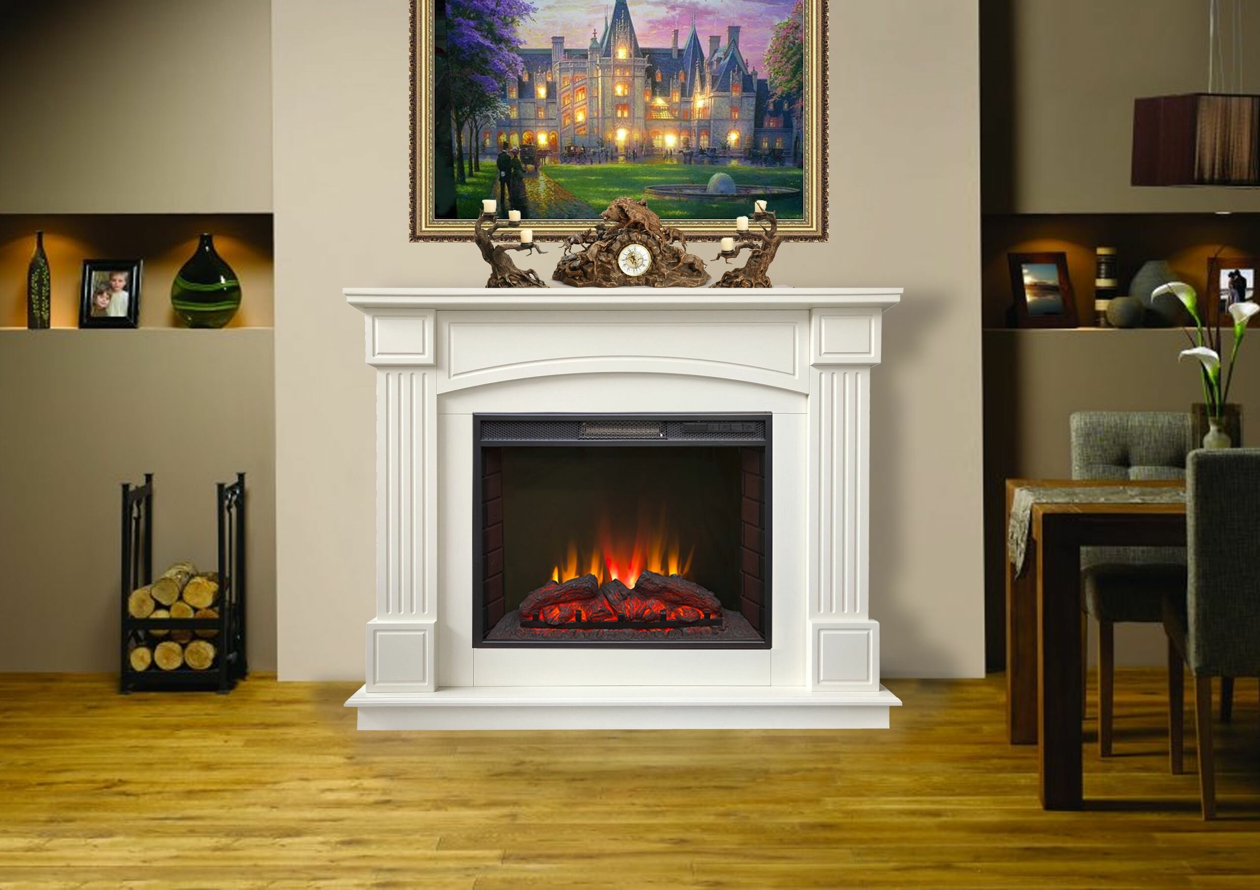 Электрокамин FlameKamin Грация WT с очагом Sparta 25.5 LED (электрический камин)