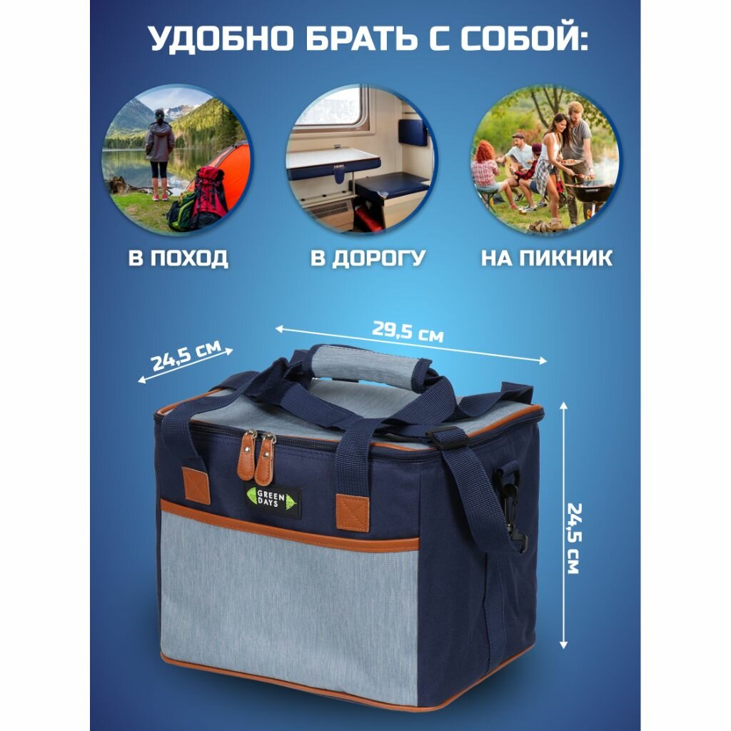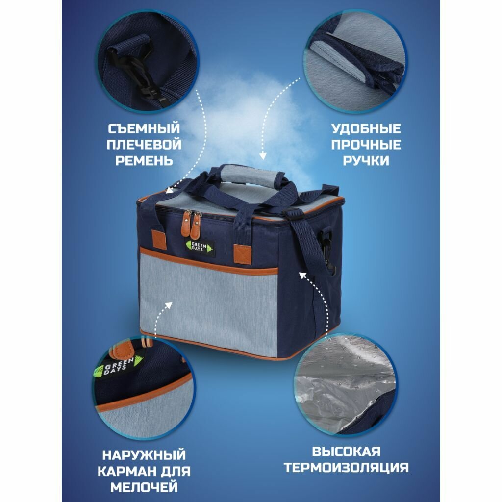 Сумка-холодильник Green Days темно-синяя с серым CA219124.01, 29.5х24.5х24.5 см, 16 л интересное: