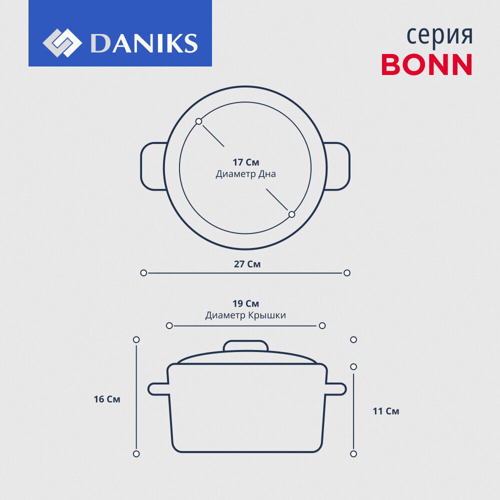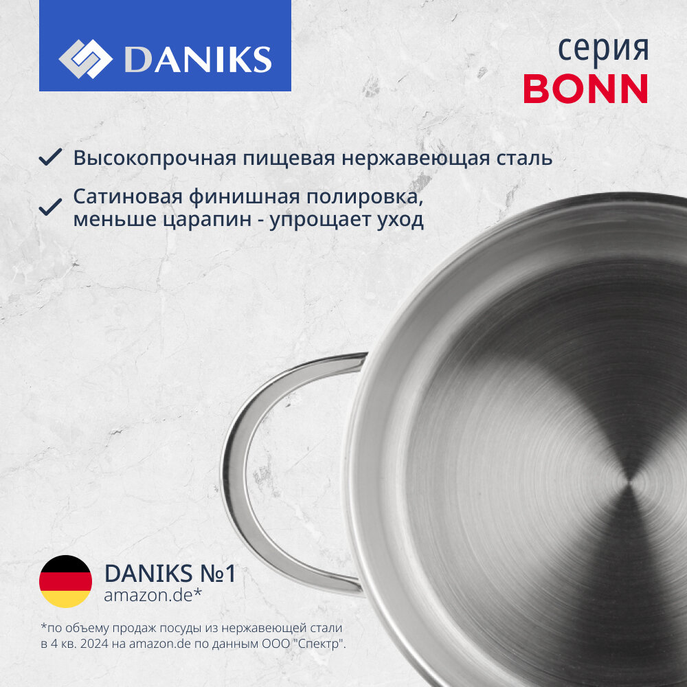 Кастрюля с крышкой Daniks Бонн, нержавеющая сталь, 1,8 л