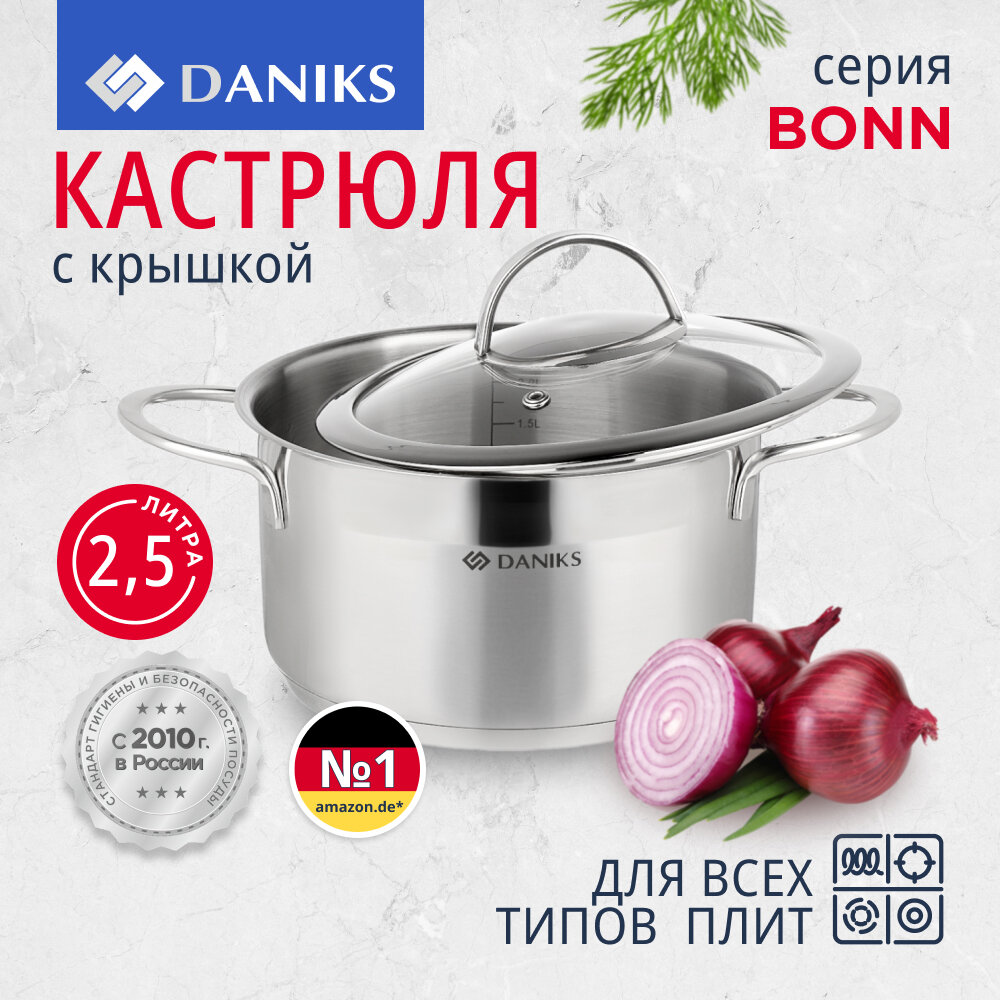 Кастрюля из нержавеющей стали с крышкой Daniks, 2.5 литра