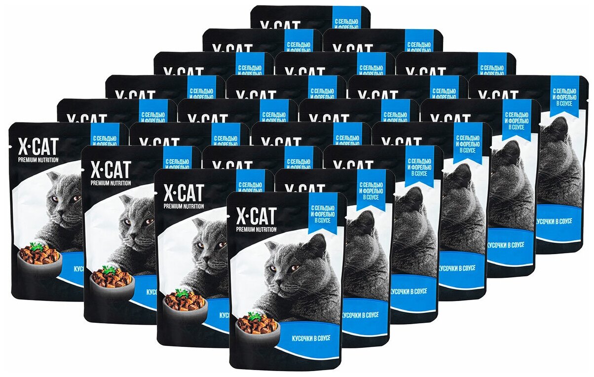 Купить X-CAT для взрослых кошек с сельдью и форелью в соусе (85 гр х 24 шт)