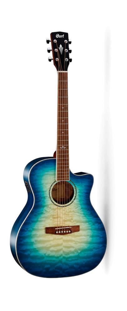 Купить GA-QF-CBB Grand Regal Series Электро-акустическая гитара, с вырезом, прозрачный синий, Cort