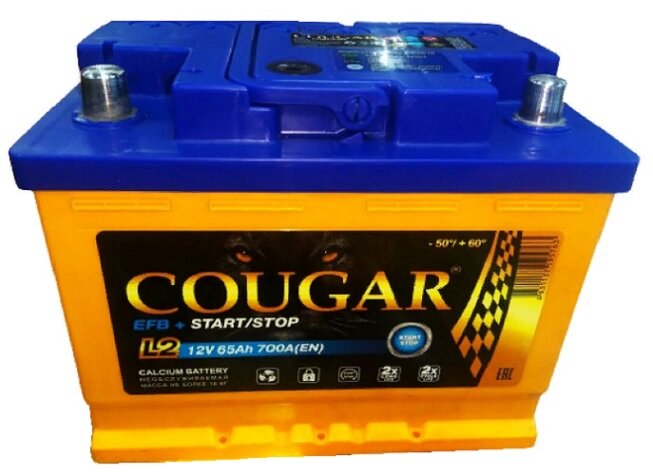 Аккумулятор автомобильный Cougar EFB 65 А/ч 700 А прям. пол. Росс. авто (242х175х190) интересное:
