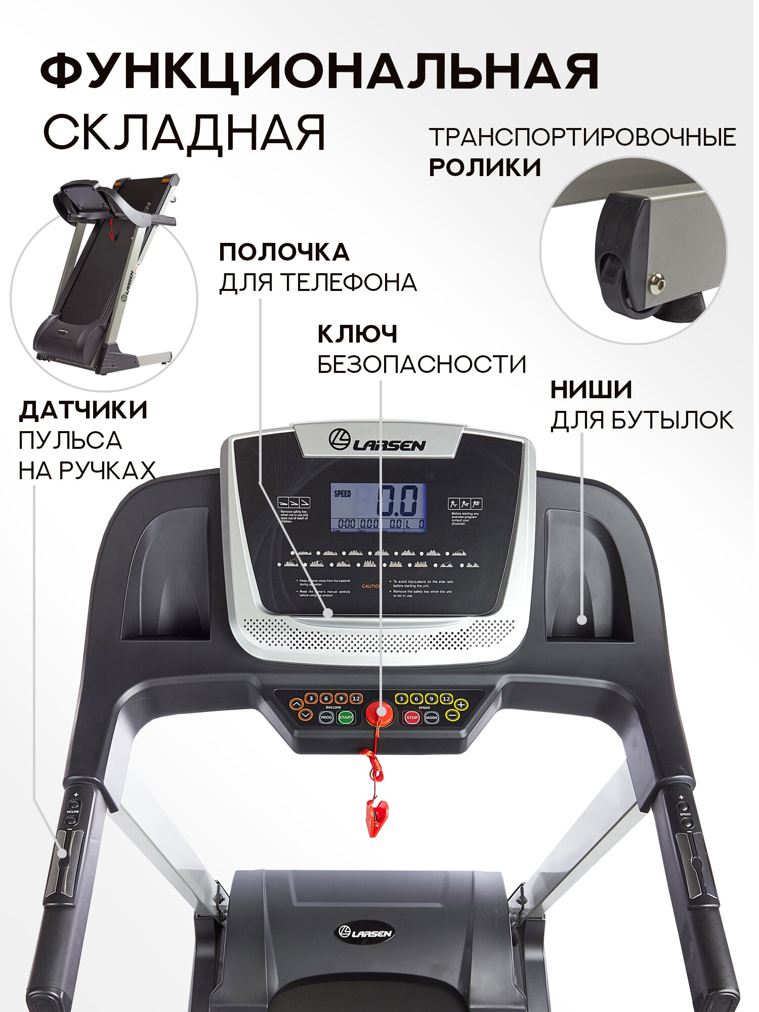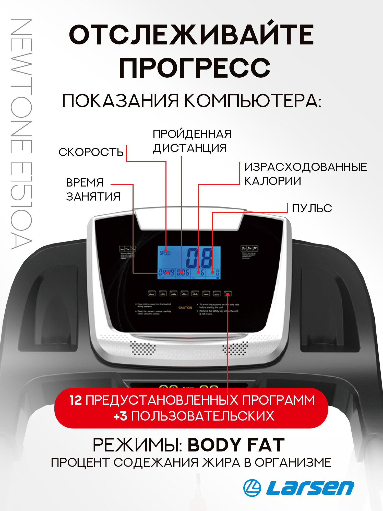 Дорожка беговая электрическая Larsen Newtone Е1510A интересное: