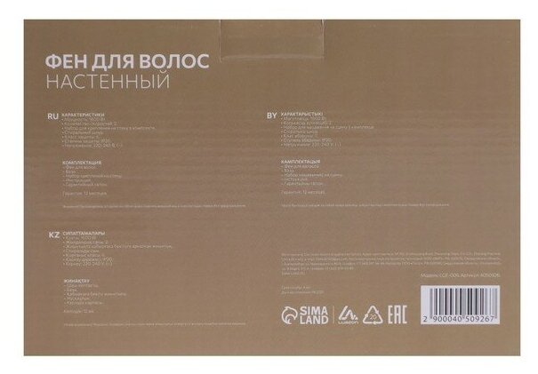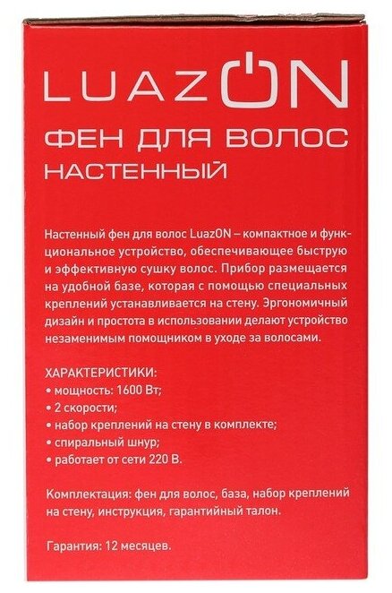 Luazon Home Фен Luazon LGE-006, 1600 Вт, настенный, 2 скорости, крепление, белый интересное:
