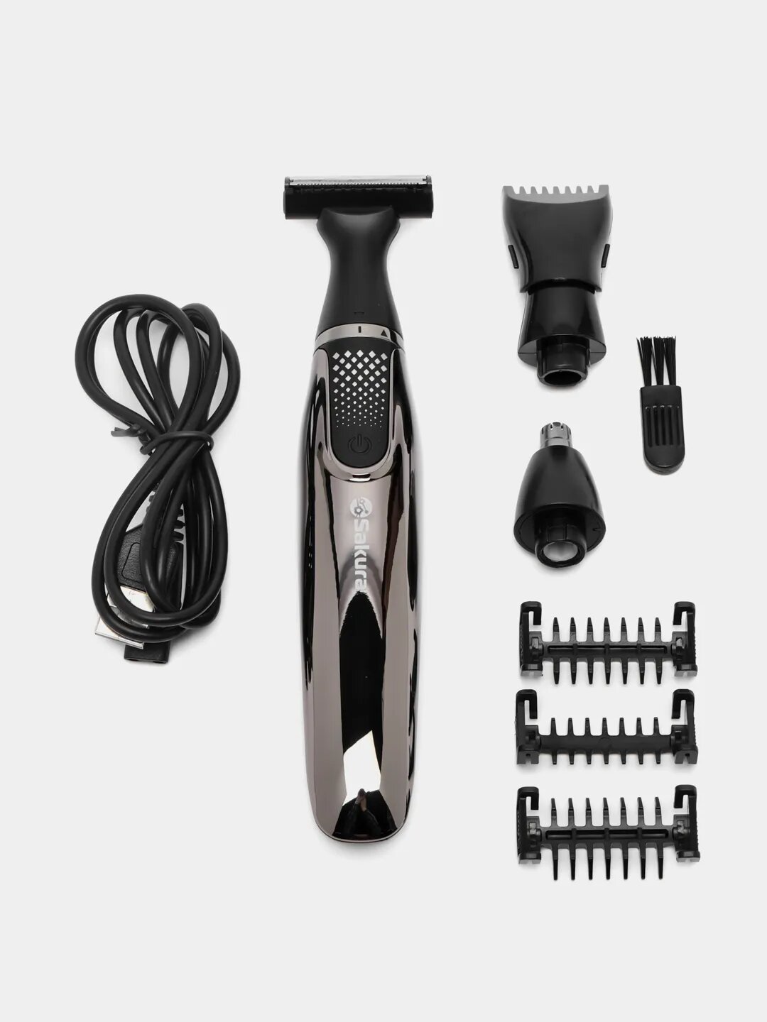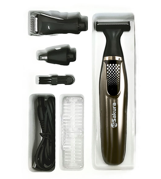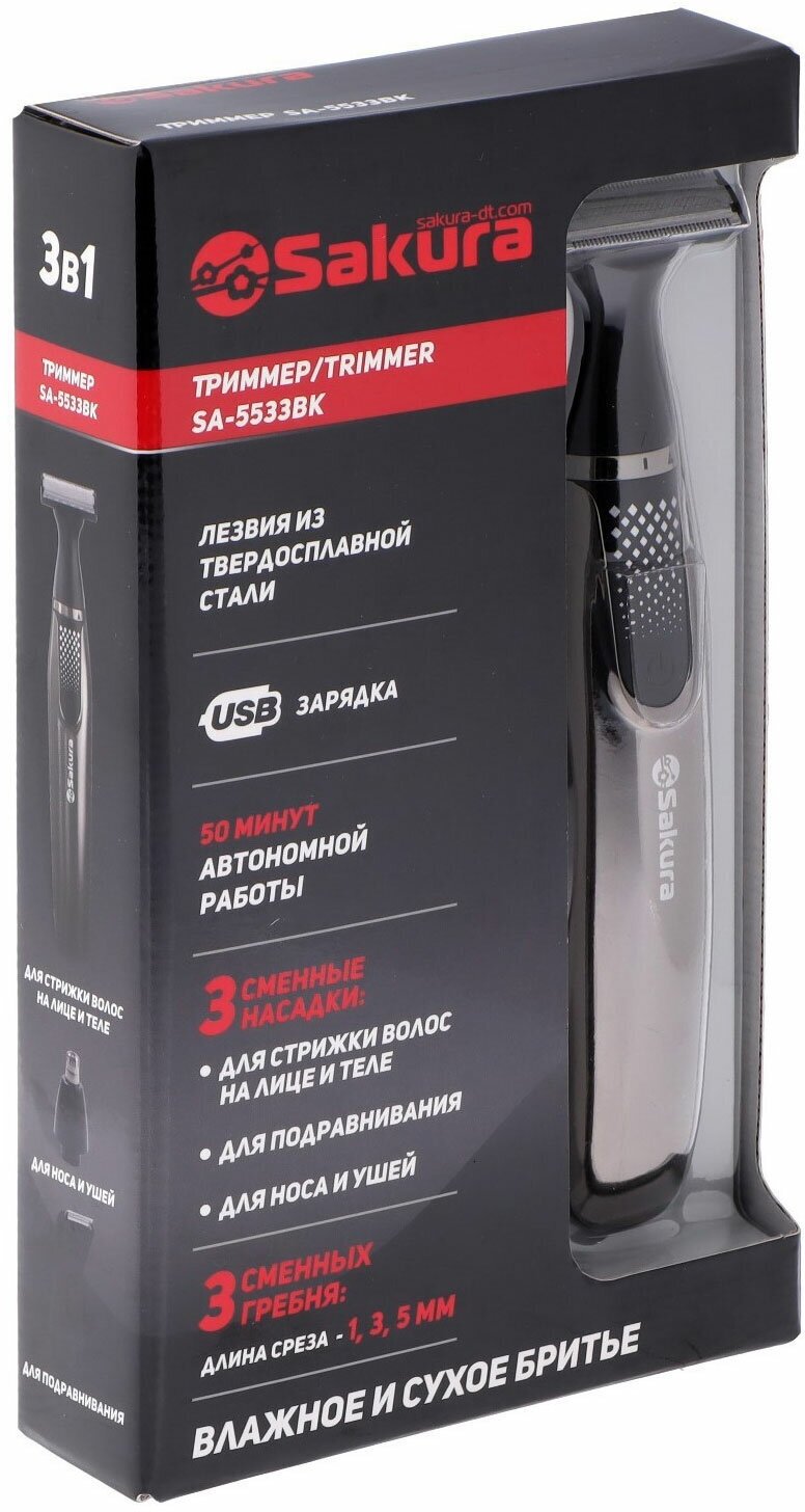 Купить Триммер Sakura SA-5533BK, для бороды/усов/носа/ушей, 1-5 мм, 4 насадки, АКБ, чёрный