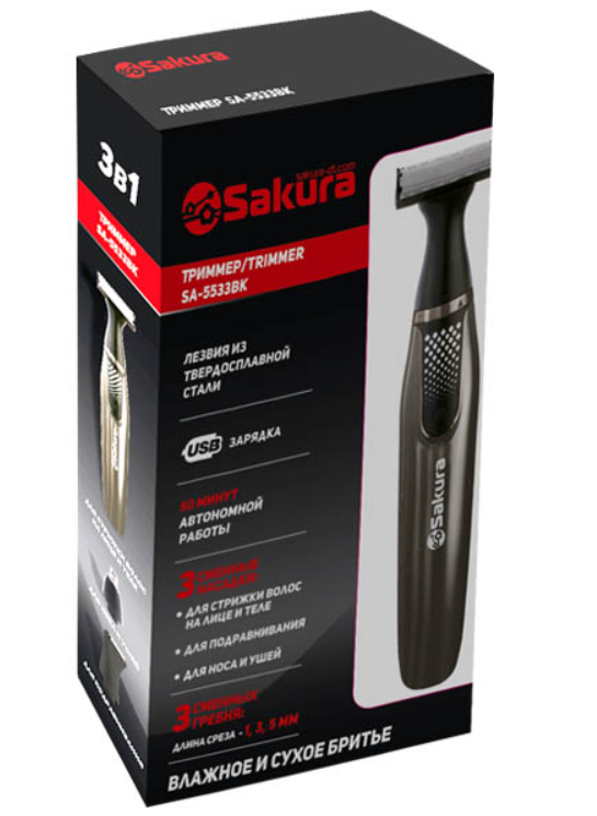 Ниже Вы можете прочитать отзывы на Триммер Sakura SA-5533BK, для бороды/усов/носа/ушей, 1-5 мм, 4 насадки, АКБ, чёрный, ознакомится с подробными характеристиками, посмотреть интересные обзоры и фотографии на Триммер Sakura SA-5533BK, для бороды/усов/носа/ушей, 1-5 мм, 4 насадки, АКБ, чёрный.