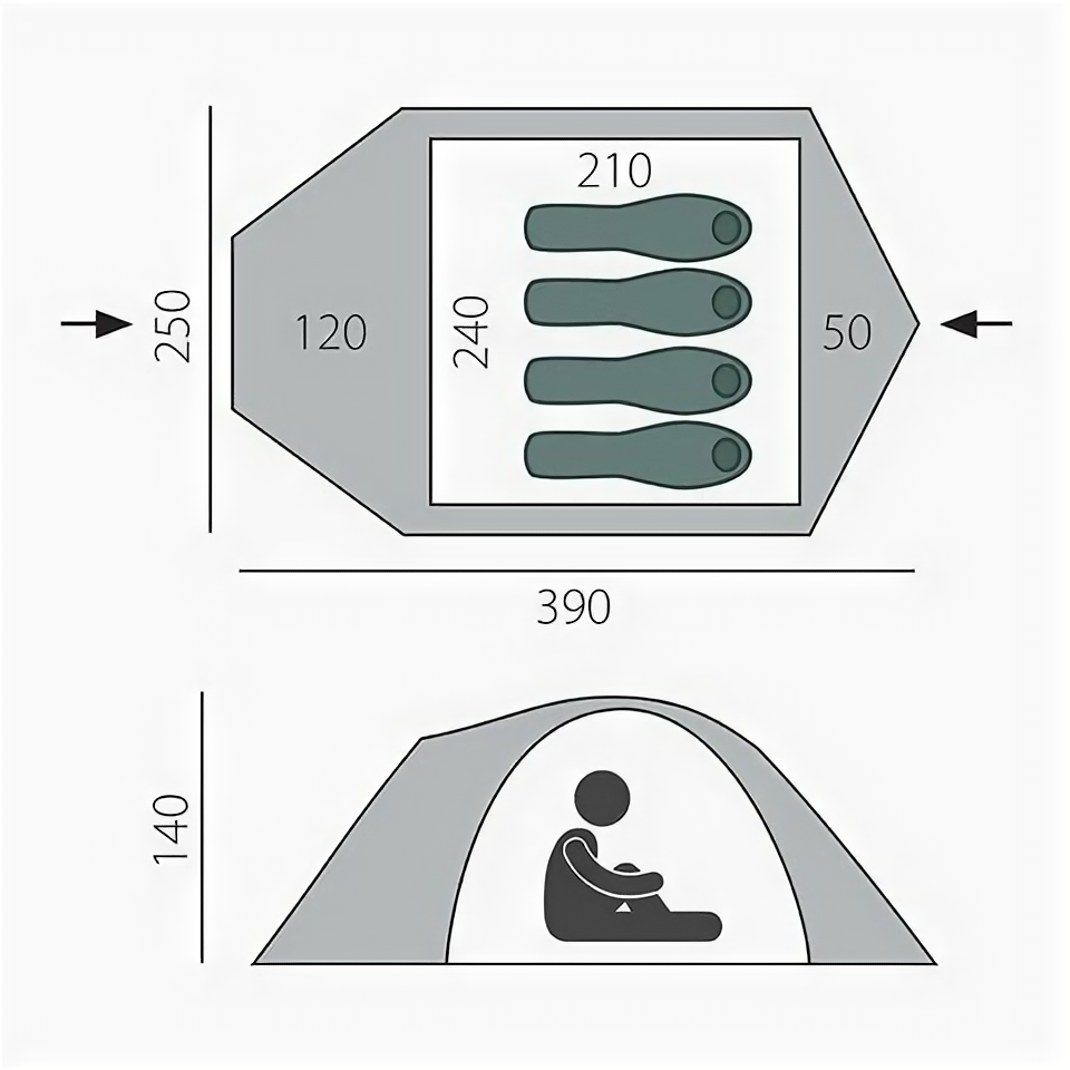 | Водостойкость тента/дна | 4000 / 6000 мм в.ст. |