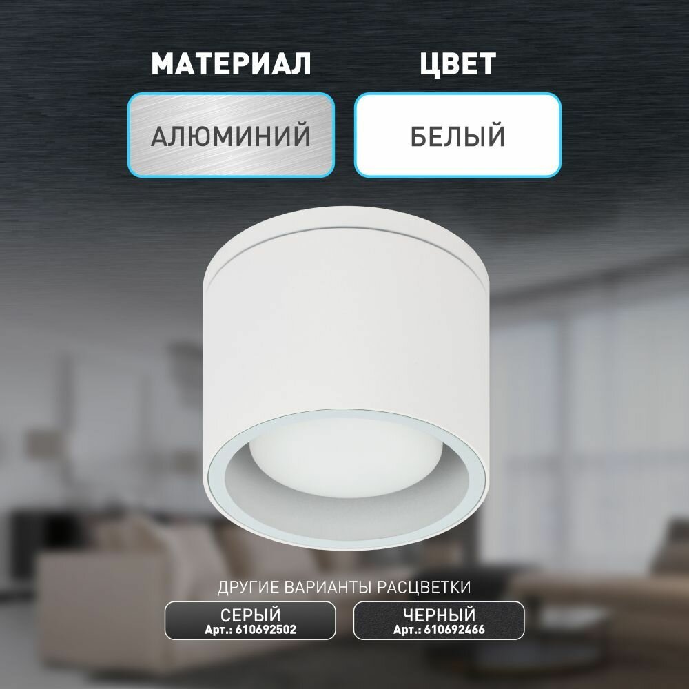 СохранитьСветильник настенно-потолочный спот ЭРА WL40 WH GX53, белый, IP54 интересное:
